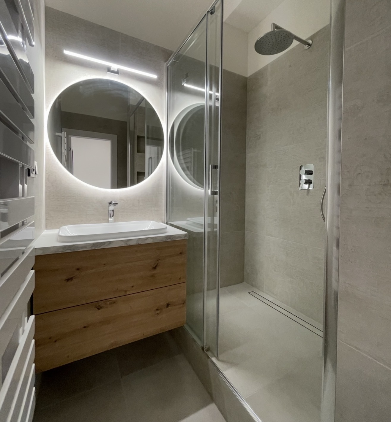 Nabízíme kompletní služby rekonstrukcí koupelen na klíč – od bouracích prací, přes rozvody vody a elektřiny, obklady a dlažby, až po montáž sanity a doplňků. Pomůžeme vám s výběrem materiálů, navrhneme praktické dispoziční řešení a postaráme se o čistou a precizní realizaci v domě i bytě.